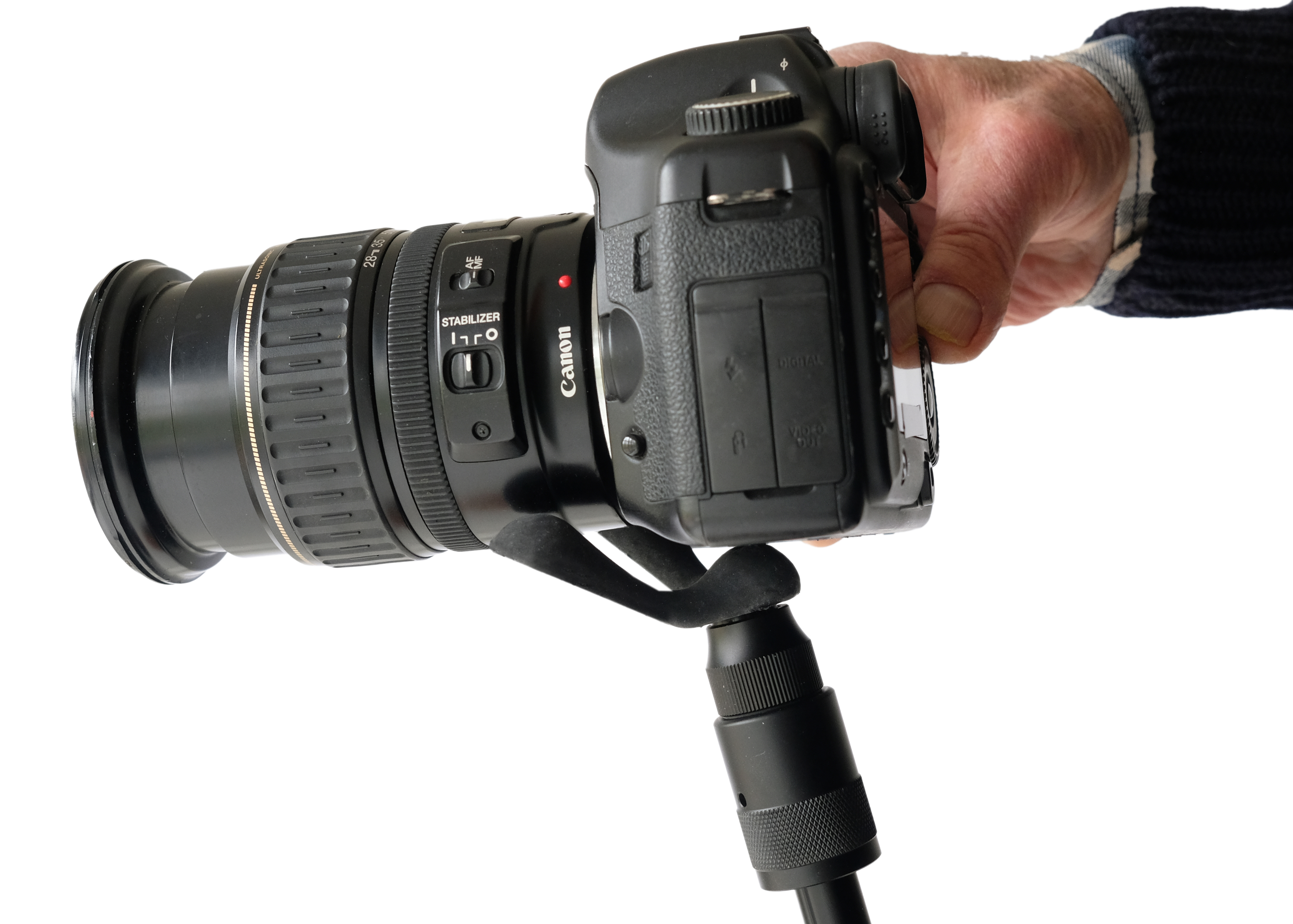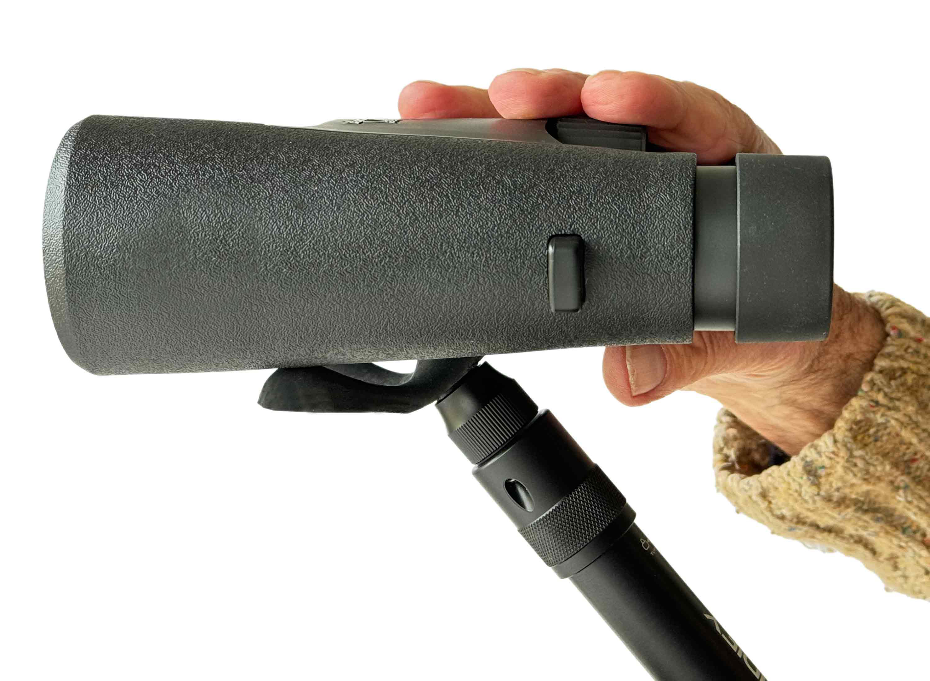 Monopod with fork: length 25–72 cm, weight 310 g With ball head: length 29–76 cm, weight 520 g Diameter: 2.5 cm Materials: steel, aluminum, polyethylene, rubber, magnet Base plate: 10×9×3 cm, 70 g Materials: polyethylene, steel, rubber, magnets Ball head: height 8 cm, Ø 3.5 cm, 200 g Materials: steel, aluminum, rubber